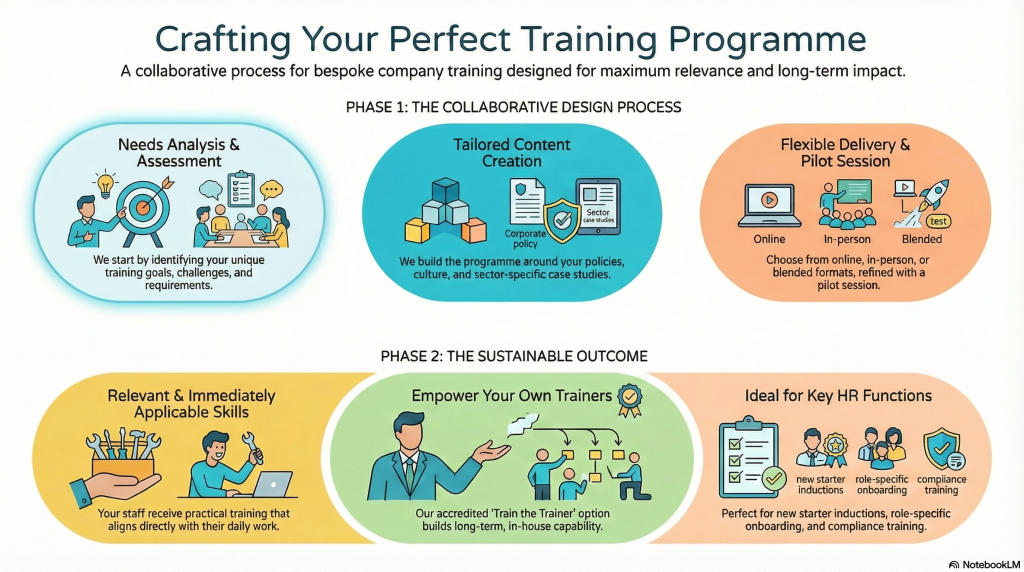 Our bespoke company training solutions are built collaboratively with you. This includes: